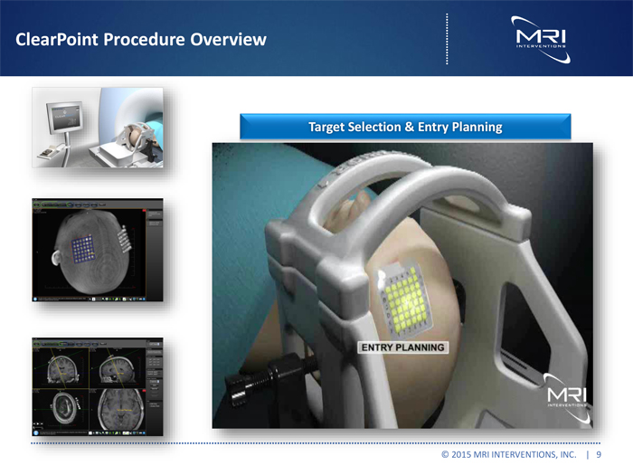 ClearPoint Procedure Overview Target Selection & Entry Planning © 2015 MRI INTERVENTIONS, INC. | 9 |