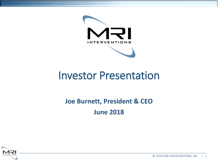 Statements herein concerning MRI Interventions, Inc. (the “Company”) plans, growth and strategies may include forward-looking statements within the context of the federal securities laws. Statements regarding the Company's future events, developments and future performance, as well as management's expectations, beliefs, plans, estimates or projections relating to the future, are forward-looking statements within the meaning of these laws. Uncertainties and risks may cause the Company's actual results to differ materially from those expressed in or implied by forward-looking statements. Particular uncertainties and risks include those relating to: the Company’s ability to obtain additional financing; estimates regarding the sufficiency of the Company’s cash resources; future revenues from sales of the Company’s ClearPoint® System products; and the Company’s ability to market, commercialize and achieve broader market acceptance for the Company’s ClearPoint System products. More detailed information on these and additional factors that could affect the Company’s actual results are described in the “Risk Factors” section of the Company’s Annual Report on Form 10-K for the year ended December 31, 2017, which has been filed with the Securities and Exchange Commission, and the Company’s Quarterly Report on Form 10-Q for the quarter ended March 31, 2018, which the Company intends to file with the Securities and Exchange Commission on or before May 15, 2018.