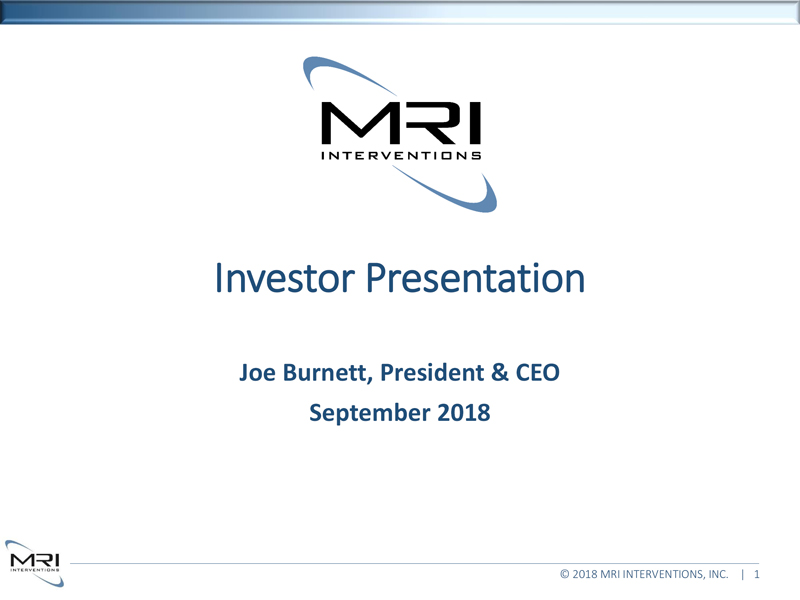Statements herein concerning MRI Interventions, Inc. (the “Company”) plans, growth and strategies may include forward-looking statements within the context of the federal securities laws. Statements regarding the Company's future events, developments and future performance, as well as management's expectations, beliefs, plans, estimates or projections relating to the future, are forward-looking statements within the meaning of these laws. Uncertainties and risks may cause the Company's actual results to differ materially from those expressed in or implied by forward-looking statements. Particular uncertainties and risks include those relating to: the Company’s ability to obtain additional financing; estimates regarding the sufficiency of the Company’s cash resources; future revenues from sales of the Company’s ClearPoint® System products; and the Company’s ability to market, commercialize and achieve broader market acceptance for the Company’s ClearPoint System products. More detailed information on these and additional factors that could affect the Company’s actual results are described in the “Risk Factors” section of the Company’s Annual Report on Form 10-K for the year ended December 31, 2017, which has been filed with the Securities and Exchange Commission, and the Company’s Quarterly Report on Form 10-Q for the quarter ended March 31, 2018, which the Company intends to file with the Securities and Exchange Commission on or before May 15, 2018.